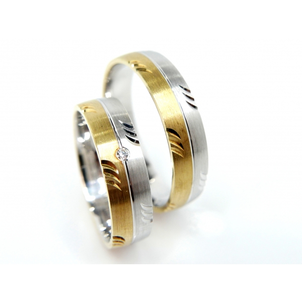 Snubní prsteny vyrobeny v kombinaci bílého a žlutého zlata