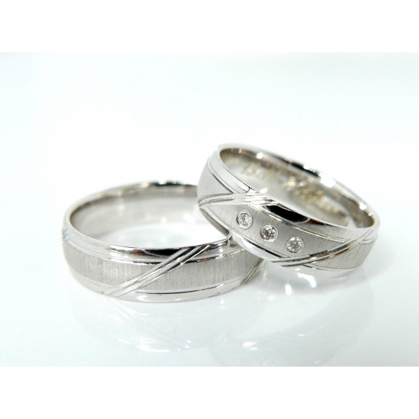Snubní prsteny vyrobené ze stříbra . Prsteny s matováním a drážkami. Dámský prsten se zirkony. . Šířka prstenů je 5,5 mm