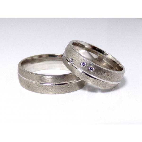 Snubní prsteny vyrobené z bílého 14kt zlata, velmi kvalitní a masivní provedení zajišťuje komfort při nošení. Dámský prsten se zirkony/brilianty/moissanity v ceně 29650,-