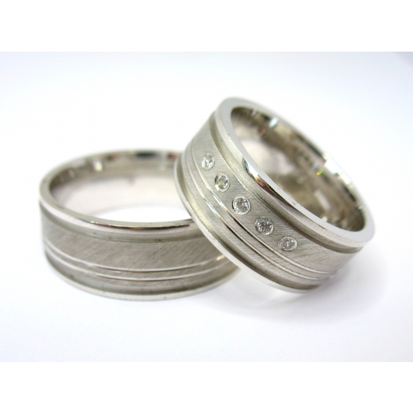 Snubní prstey vyrobené z bílého zlata , prsteny zdobené matováním, dámský zirkony/brilianty