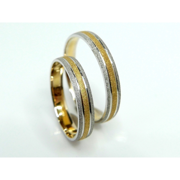 Snubní prsteny bílo žluté 14kt zlato s matováním.