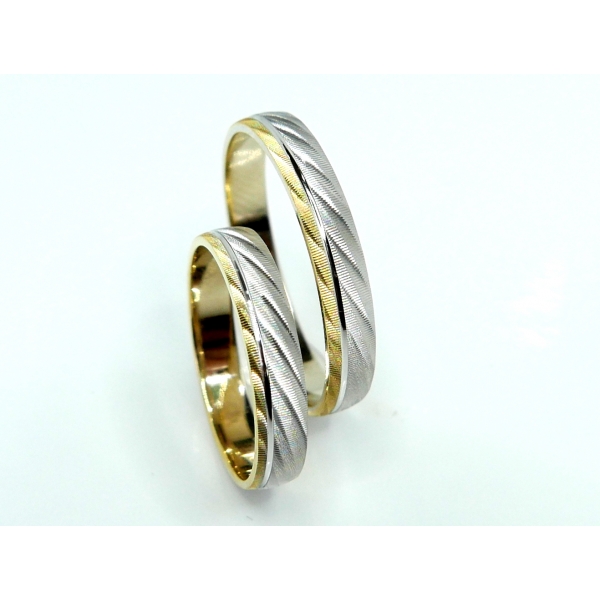 Snubní prsteny vyrobené v kombinaci bílého žlutého zlata s výrazným broušením
