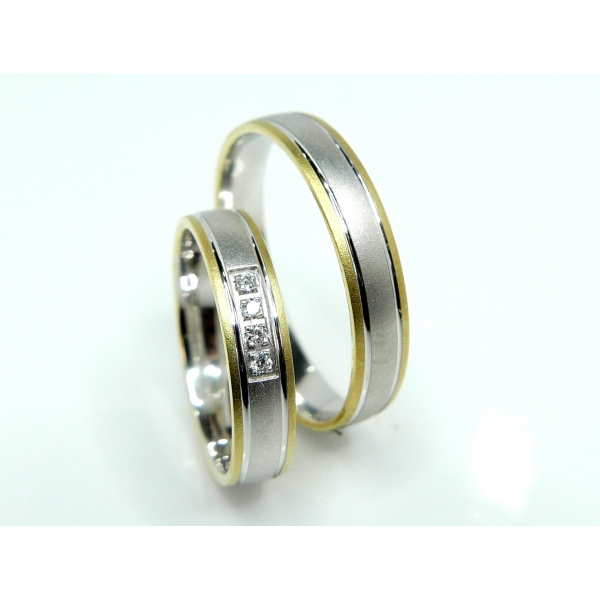 Snubní prsteny v kombinaci s bílým zlatem a matováním , dámský prsten zdobený zirkony. Prsteny lze vyrobit i s brilianty . Cena páru s moissanity 15900,-