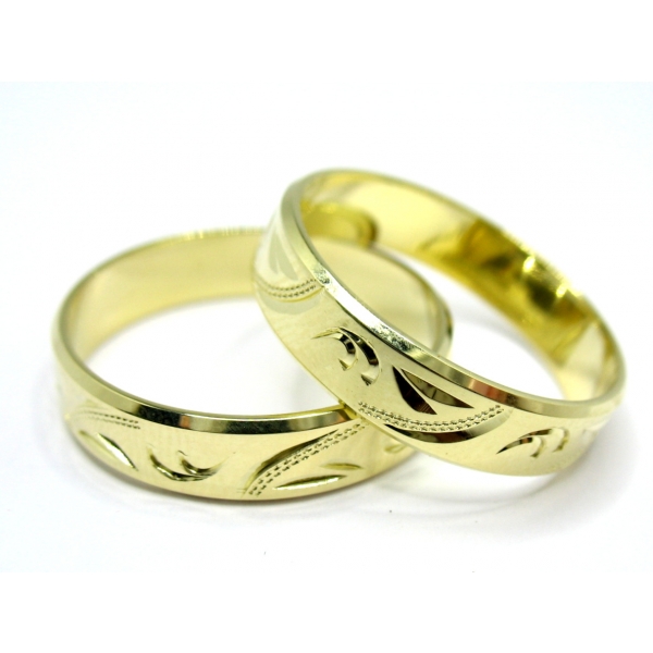 Snubní prsteny vyrobené ze 14 kr. zlata s ručním hlubokým rytím .