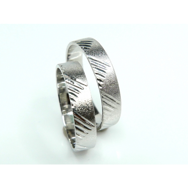 Snubní prsteny z bílého zlata s matováním a rytinkami
