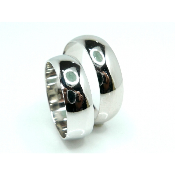 Snubní prsteny vyrobené ze 14kt zlata. Hladké bílé snubní prsteny v šířce 6 mm.