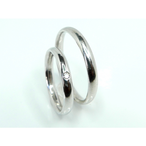 Snubní prsteny z bílého zlata, čočkovitý profil prstenu, zajišťuje pohodlné nošení. Cena páru s moissanity 14400,-