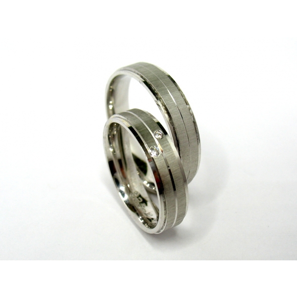 Snubní prsteny z bílého zlata s matováním a drážkami