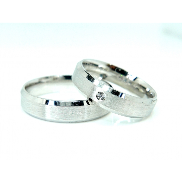 Snubní prsteny z bílého zlata s matováním a moderním designem.Cena s moissanitem je 28000,-