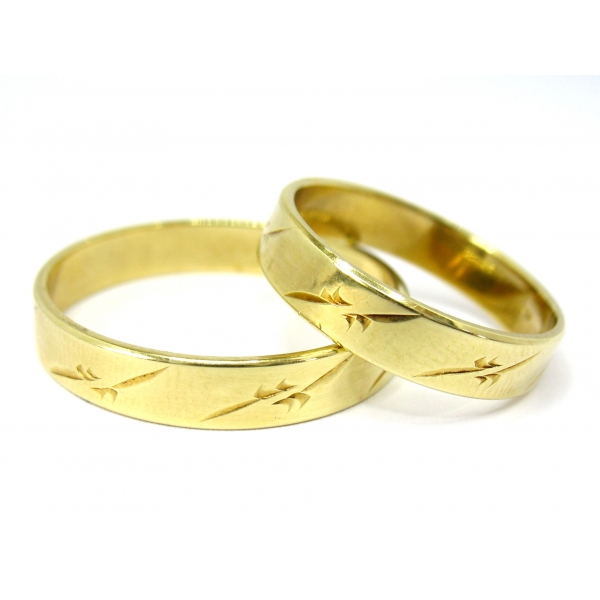 Snubní prsteny vyrobené ze 14 k zlata, prsteny zdobené rytím