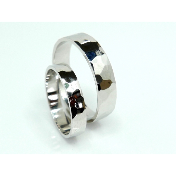 Snubní prsteny vyrobené ze stříbra v luxusním provedení, nepravidelný povrch zajišťuje velký lesk a nadčasový design
