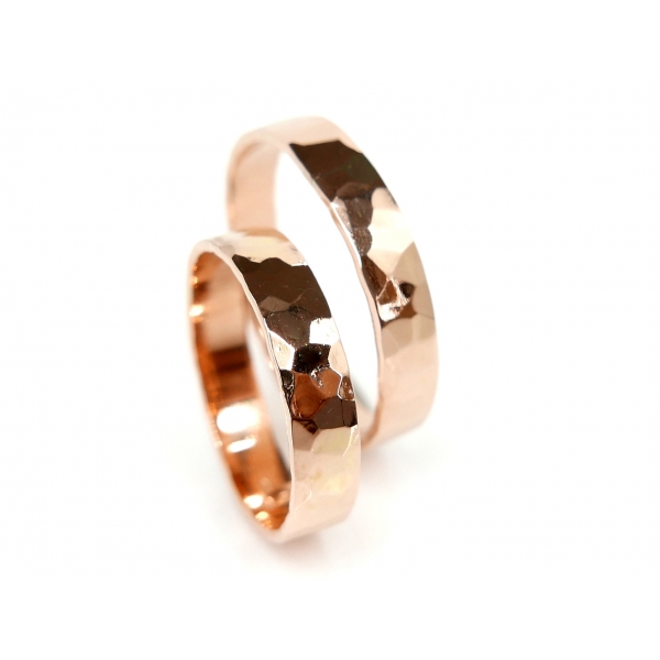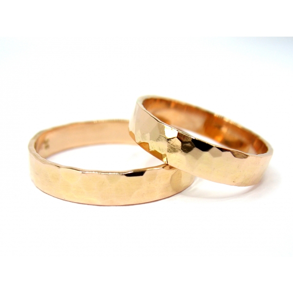 Snubní prsteny vyrobené ze 14 kt, červené (růžové) zlato, ručně tepané prsteny, lze vyrobit i v jiných barvách zlata