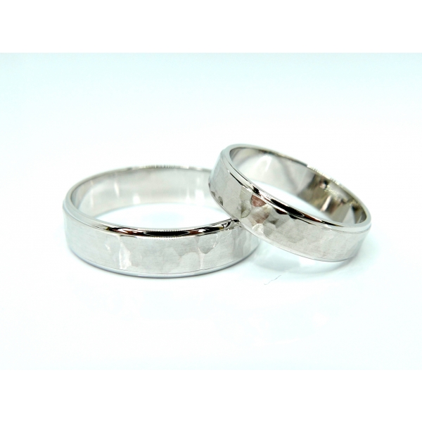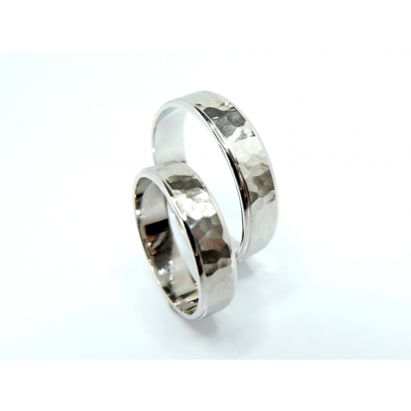 Snubní prsteny vyrobené ze 14kt zlata, prsteny jsou po celém obvodu tepané s lesklými hranami