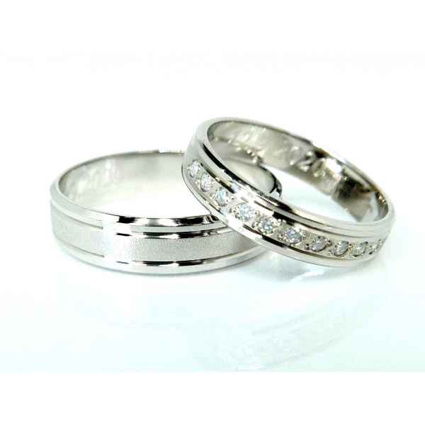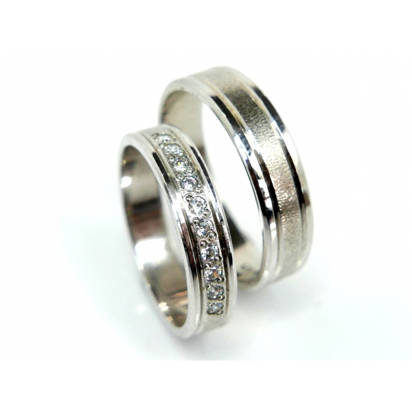 Snubní prsteny vyrobené ze 14kt bílého zlata zdobené matováním ,dámský prsten zdobený zirkony/brilianty/moissanity v ceně 20150,-