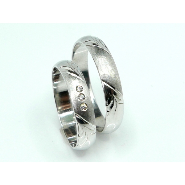 Snubní prsteny zdobené matováním a rytím z jedné třetiny. Cena s moissanity 13000,-