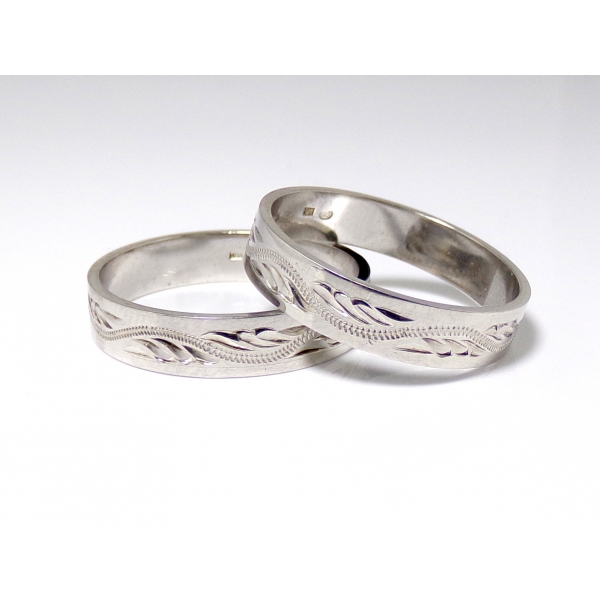 Snubní prsteny vyrobené ze 14kt zlata zdobené ručním rytím