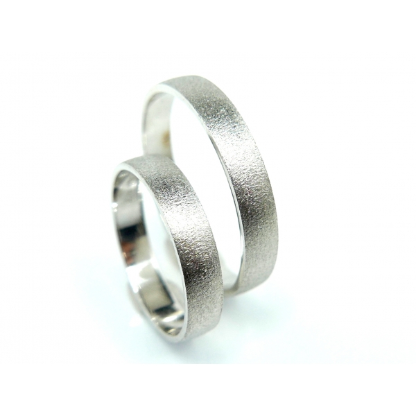 Snubní prsteny vyrobené ze 14kt zlata zdobené matováním. Prsteny můžeme vyrobit i ze žlutého a červeného zlata