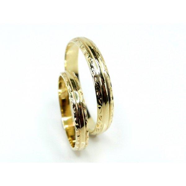 Snubní prsteny vyrobené ze 14kt zlata zdobené rytím, velmi hezký jemný model