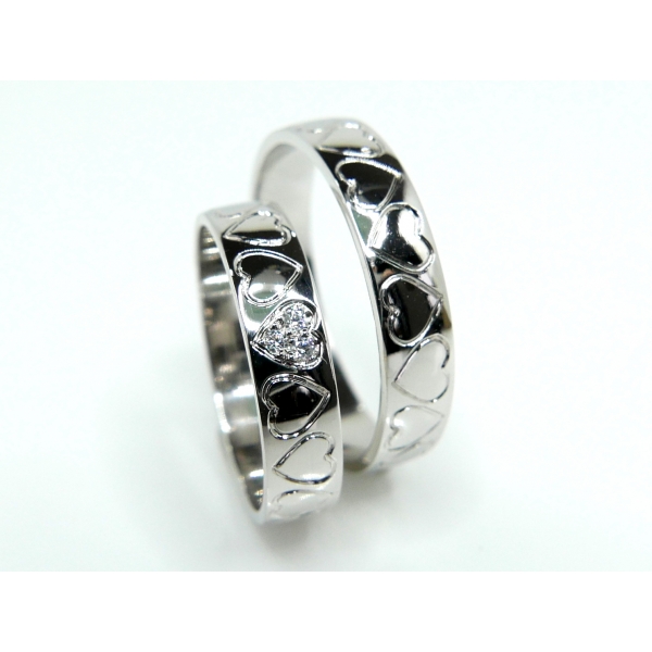 Snubní prsteny ze 14kt zlata pro zamilované.V dámském jedno srdíčko zdobené zirkony/brilianty/moissanity v ceně 16000,- .Pánský prsten může být v hladkém provedení.