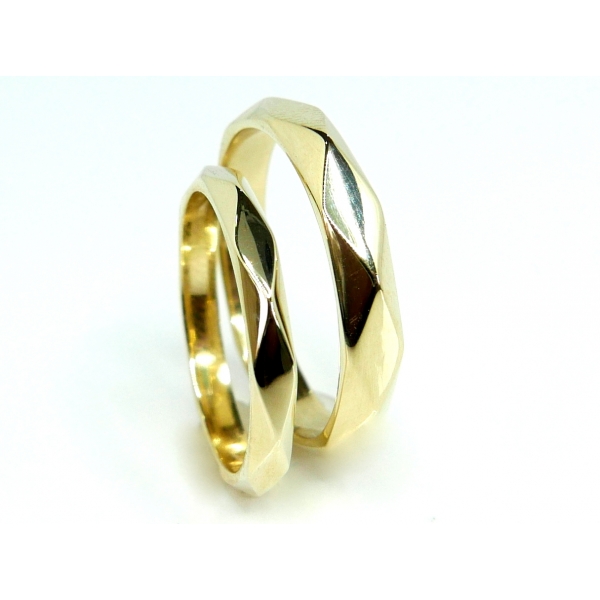 Prsteny lze zhotovit i v bílém a červeném zlatě.Pánský je širší než dámský.