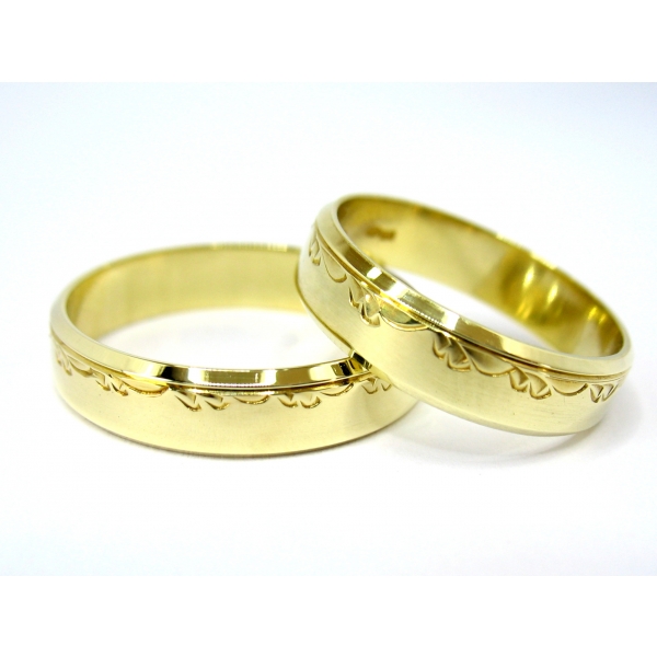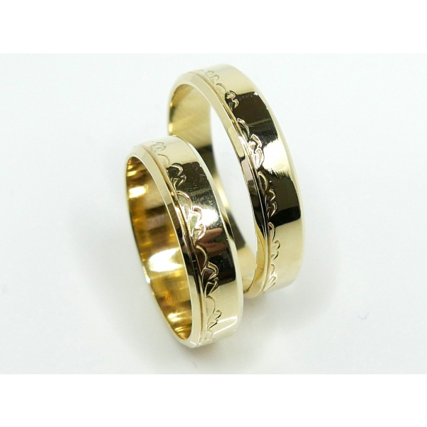 Snubní prsteny vyrobené ze 14 k zlata, prsteny zdobené rytím