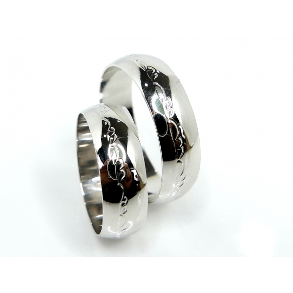 Snubní prsteny vyrobené ze stříbra zdobené rytím