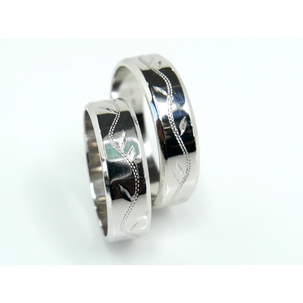 Ručně ryté prsteny se zkosenými hranami v plném lesku vyrobené ze 14kt zlata