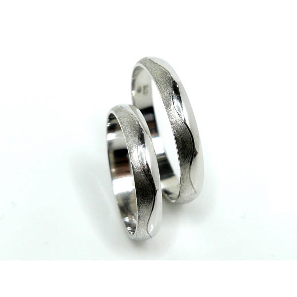 Snubní prsteny vyrobené ze stříbra zdobené matováním