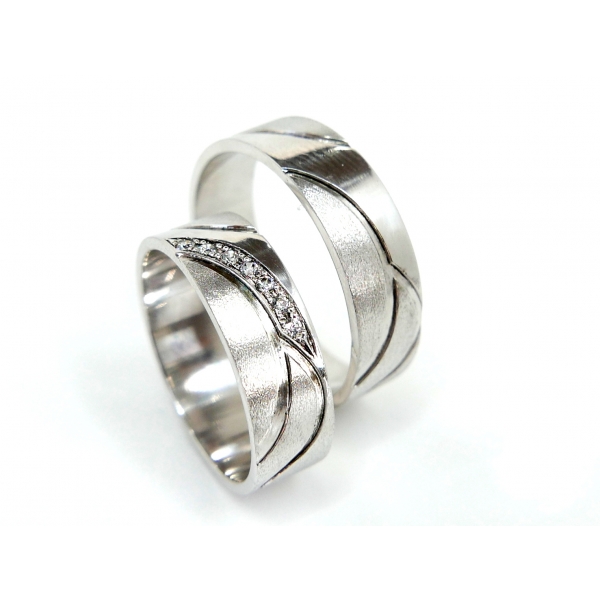Snubní prsteny vyrobené ze stříbra zdobené matováním a rytinkami