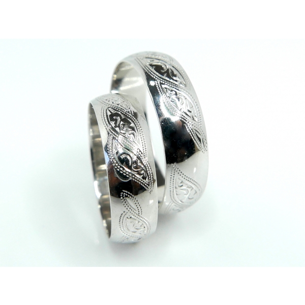 Snubní prsteny vyrobené ze stříbra zdobené ručním rytím