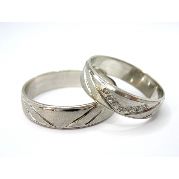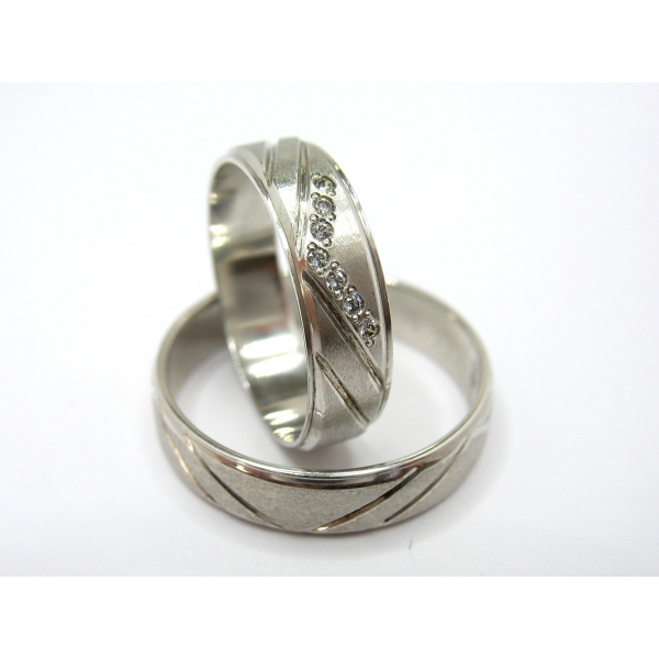 Snubní prsteny vyrobené ze 14 k zlata , prsteny zdobené matováním, dámský posázen zirkony/brilianty/moissanity v ceně 16350,-