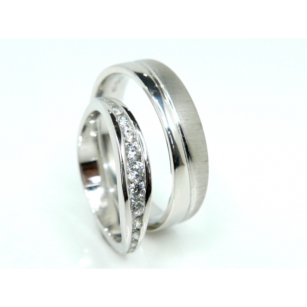 Snubní prsteny ze stříbra , pánský prsten s módním matováním, dámský prsten se zirkony