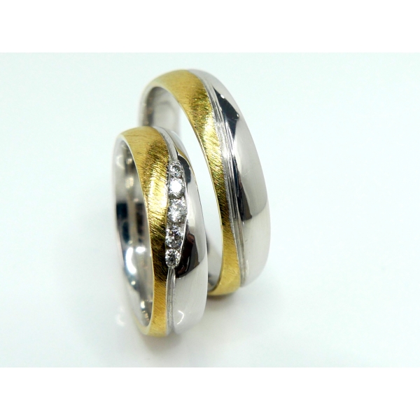 Snubní prsteny v kombinaci zlata. Prsteny zdobené matováním , dámský zirkony/brilianty