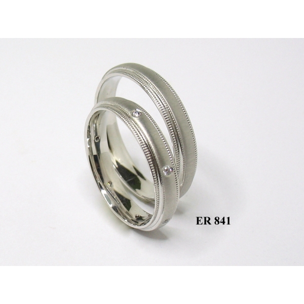 Elegantní snubní s luxusním vnitřním profilem. V dámskem prstýnku jsou kamínky -zirkonky po obvodu.Vzor: ER 841