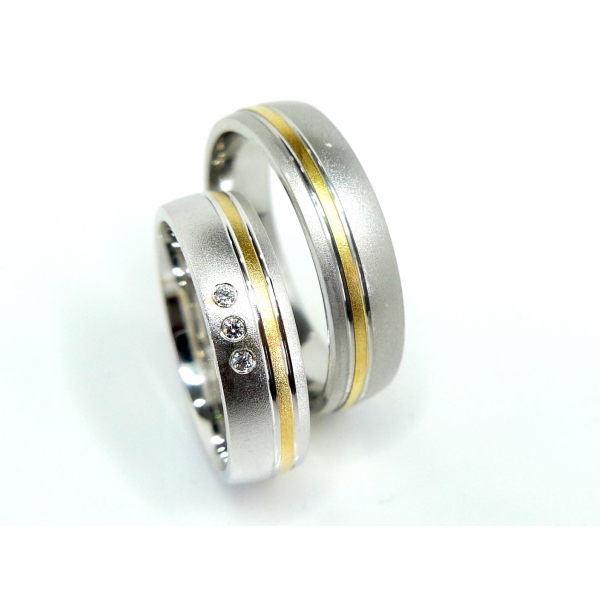 Snubní prsteny z bíložlutého 14kt zlata. Prsteny lze vyrobit se zirkony/brilianty/moissanity v ceně 27400,-