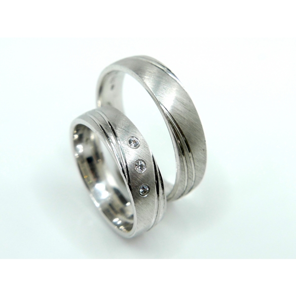 Snubní prsteny z bílého zlata. Dámský se 3 zirkony.