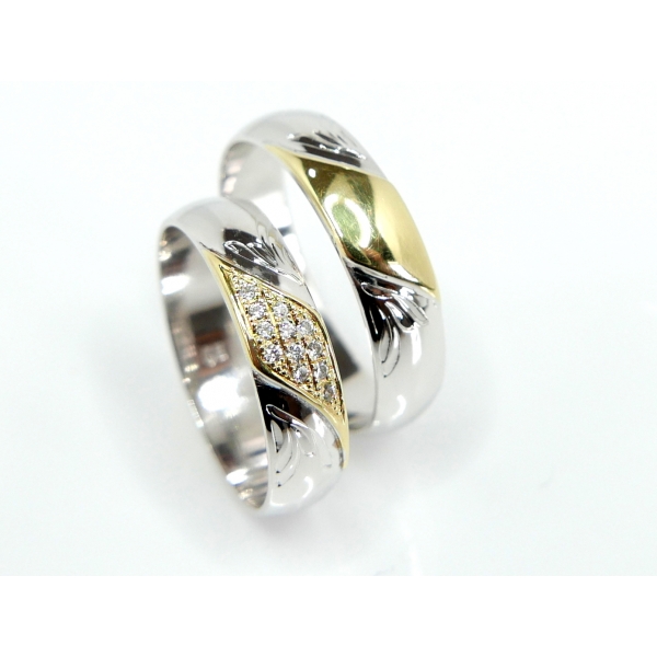 Snubní prsteny vyrobené ze 14kt bílého zlata v kombinaci žlutého/červeného zlata. Prsteny lze vyrobit se zirkony/brilianty .