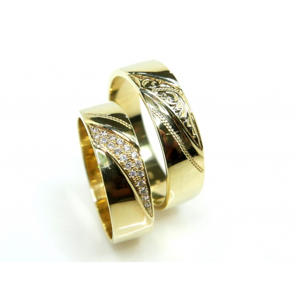 Luxusní ručně vypilovávané snubní prsteny. Lze zhotovit i v bílém zlatě se zirkony/ brilianty/moissanity v ceně 25000,-