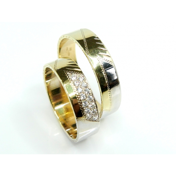 SNUBNÍ PRSTENY Z BÍLO-ŽLUTÉHO ZLATA. LZE ZHOTOVIT I V BÍLO-ČERVENÉ KOMBINACI SE ZIRKONY NEBO BRILIANTY. Cena s moissanity 28160,-