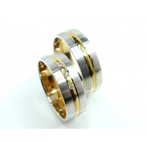 Snubní prsteny vyrobeny v kombinaci bílého a žlutého 14kt zlata . Cena s moissanity 22500,-