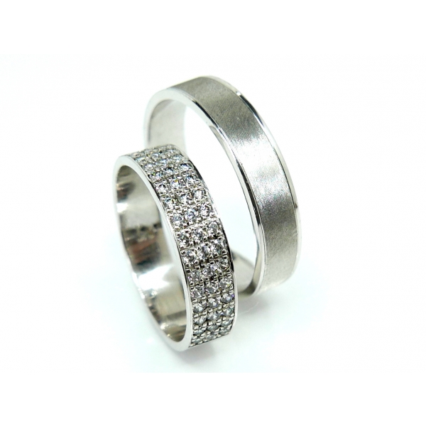Snubní prsteny ze stříbra v luxusním a precizním provedení. Dámský prsten posázen zirkony . Pánský prsten zdobený matováním. Prsteny lze objednat i s brilianty ve zlatě , které podtrhnou krásu a luxus tohoto prstenu. Cena s brilianty 54.900,- (48 briliantů)