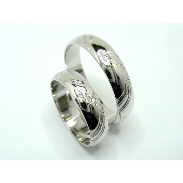 Ručně ryté půlkulaté prsteny se 3 kamínky, které krásně dozdobí dámský snubáček.