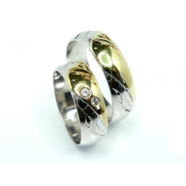 SNUBNÍ PRSTENY Z BÍLO-ŽLUTÉHO ZLATA. LZE ZHOTOVIT I V BÍLO-ČERVENÉ KOMBINACI SE ZIRKONY NEBO BRILIANTY. Cena s moissanity 20600,-