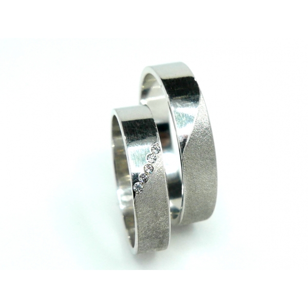 Snubní prsteny z bílého zlata s módním matováním vyrobené ze 14k bílého zlata zdobené zirkony/brilianty/moissanity v ceně 16650,-