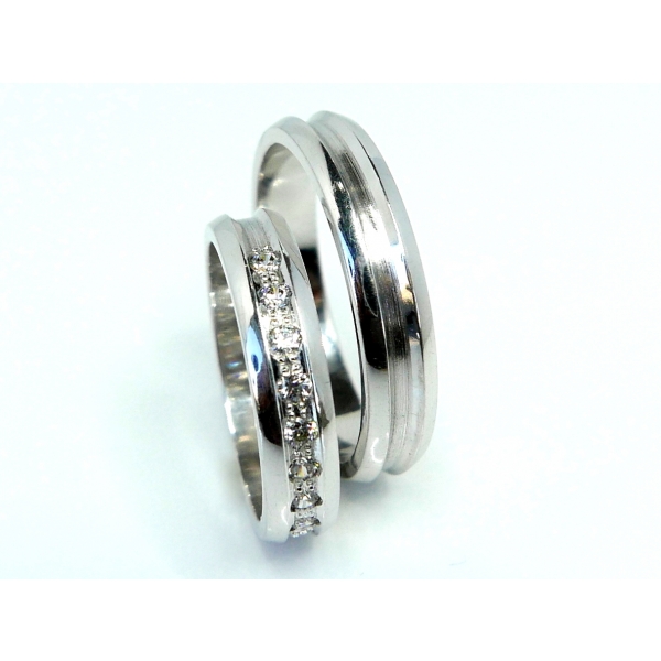 Snubní prsteny vyrobené z bílého zlata , dámský prsten se zirkony. Cena páru s moissanity 27500,-