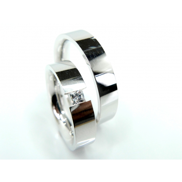 Snubní prsteny vyrobeny ze stříbra zdobené velkým středovým zirkonem