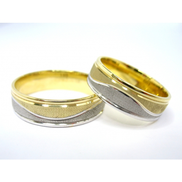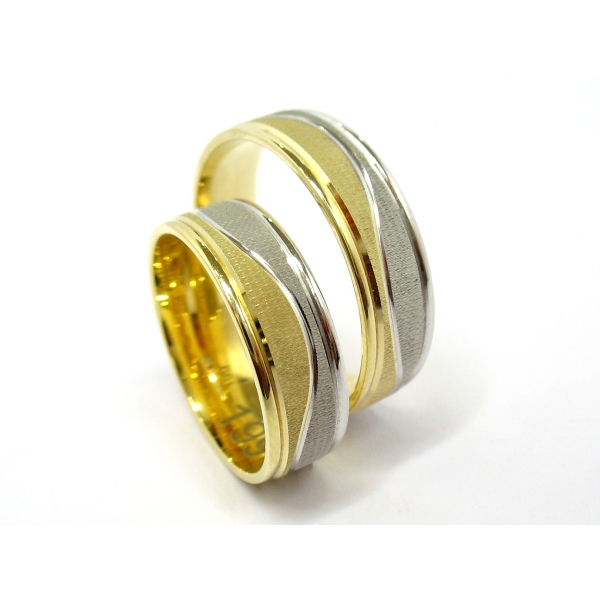Snubní prsteny vyrobeny v kombinaci bílého a žlutého zlata