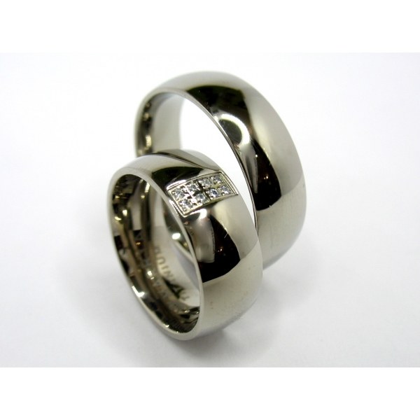 Snubní prsteny z titanu v luxusním širokém a lesklém provedení, dámský prsten se zirkony