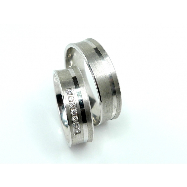 Snubní prsteny vyrobené ze 14kt zlata zdobené matováním a zirkony/brilianty/moissanity v ceně 26800,-
