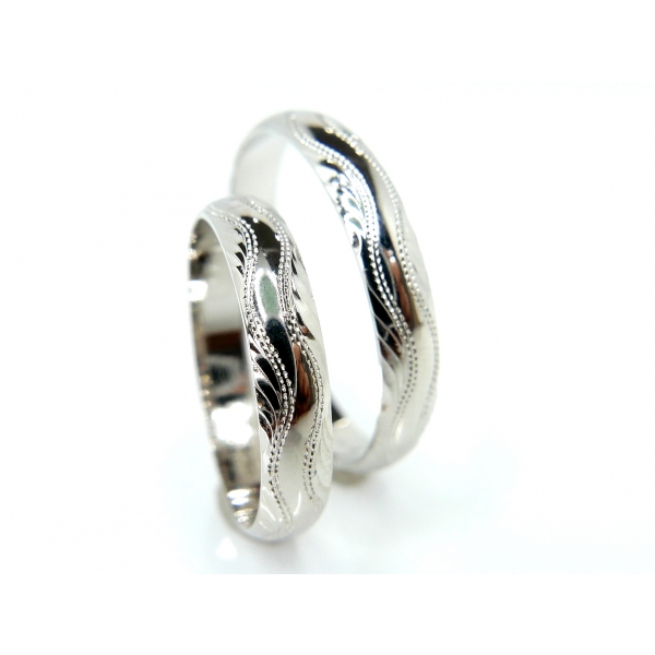 Snubní prsteny vyrobené ze 14kt zlata zdobené ručním rytím